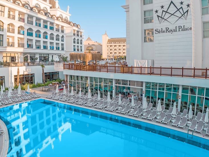 Voel je thuis in het 5-sterrenhotel Royal Palace in Side, een all-inclusive paradijs voor een zorgeloze vakantie. Geniet van zonovergoten uren op het terras, afgewisseld met een duik in het buitenbad. De luxe sfeer ervaar je overal, van de wellness tot sportfaciliteiten. Voor de kids zijn er een kinderbad en een kinderdisco. Sluit je dag af met een heerlijk diner in een van de 3 restaurants en loop door naar de bars. Tot rust komen doe je op je comfortabele kamer. Boek nu je gezinsverblijf in het Royal Palace!