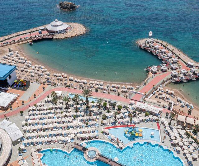 De naam zegt het al; in Hotel Granada Luxury Okurcalar ga je een luxe vakantie tegemoet. Het hotel is volledig gerenoveerd in 2021 en heeft een bijzondere architectuur. De speels gevormde pier die voor het hotel in de zee ligt nodigt je uit om heerlijk van de zon te genieten. Het animatieteam verrast je dagelijks met leuke activiteiten. De vele faciliteiten, waaronder een uitgebreid wellnesscenter maken jouw vakantie compleet.